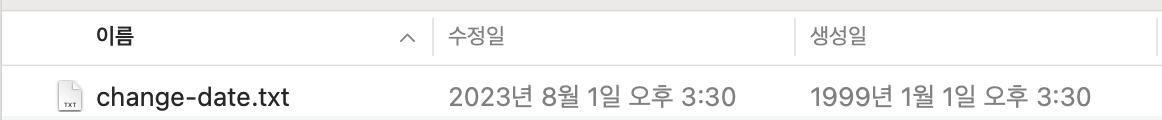 - 터미널에서 touch 명령어를 사용해 파일의 수정일을 간단히 변경할 수 있습니다.
