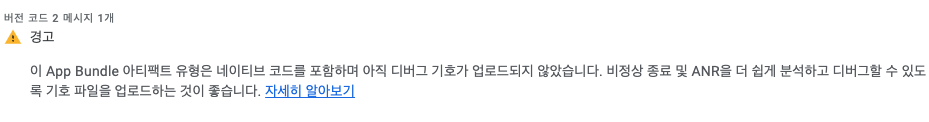 앱 번들 파일을 올리고 나니 경고 메시지가 뜨는걸 확인했다.