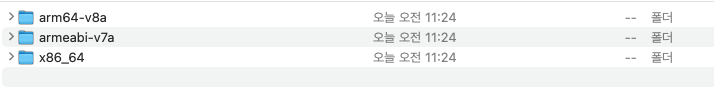 - Flutter 프로젝트의 build/app/intermediates/merged_native_libs/release/out/lib 경로안의 폴더를 압축